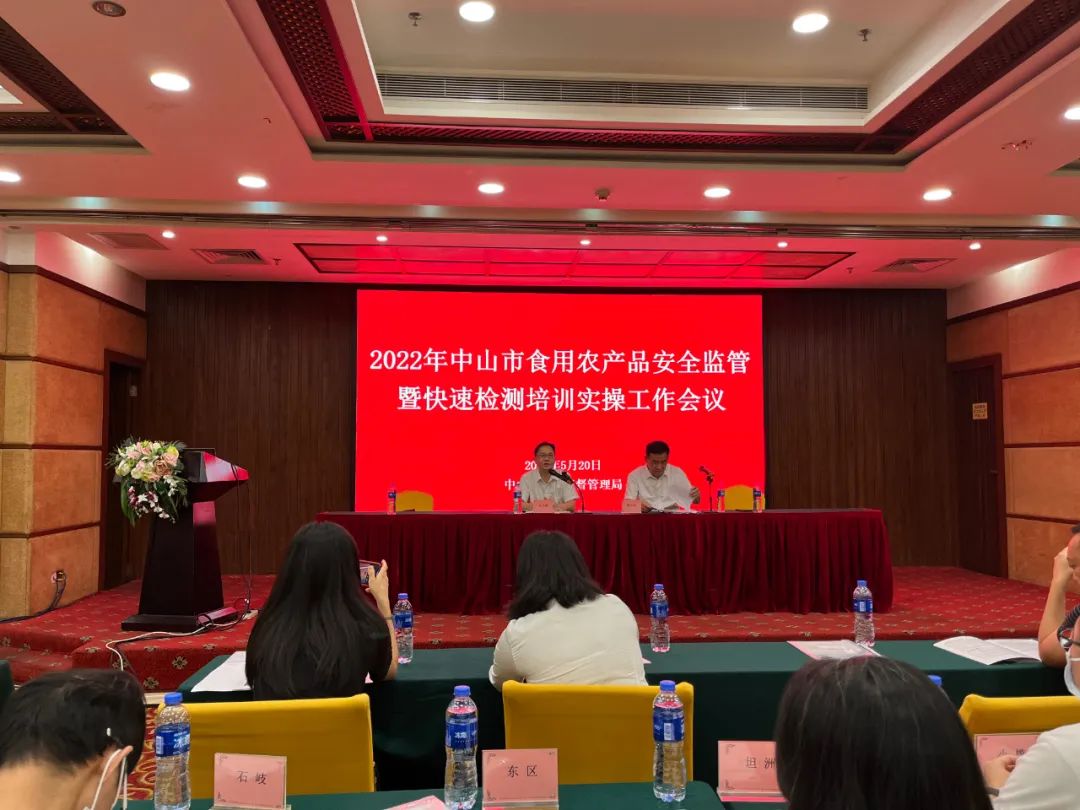 为进一步提升中山食品安全快检从业人员的快检能力及水平,充分发挥食品快检在食品安全质量监管中的作用,中山市市场监督管理局于今日举办“2022年中山市食用农产品安全监管暨快速检测培训实操工作会议”。中山市市场监督管理局相关领导及全市各镇街道快检人员、第三方快检机构等代表参与会议。