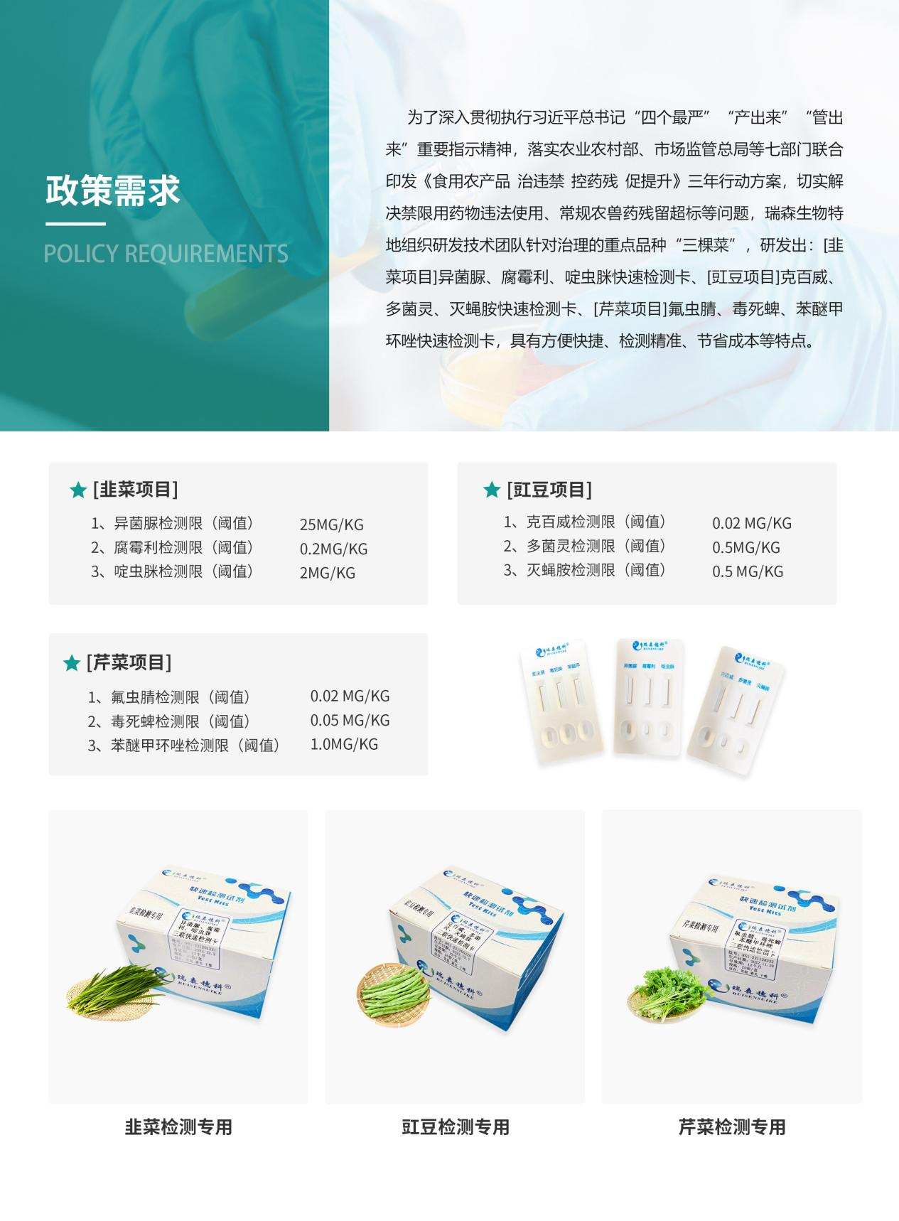 乐竞在线注册认真学习和贯彻农业农村部2023年全国农产品质量安全监管工作会议精神,积极拥护和响应《中华人民共和国食品安全法》。早在2021年国家农业农村部发布了《食用农产品“治违禁 控药残 促提升”三年行动方案》的通知后,乐竞在线注册就积极拥护和响应文件精神,并针对《方案》中提到的需要重点治理的11种农产品:“三棵菜”、“一枚蛋”、“一只鸡”、”肉牛肉羊“、“四条鱼”,推出了相关的新品应对方案,包括”农药残留胶体金多联检测产品系列“、”禽蛋药残专项检测解决方案“、”荧光定量快速检测产品“等相关技术领先的新型检测产品。有效解决了国家食用农产品存在的安全隐患问题,充分保障了老百姓”菜篮子“上的安全。