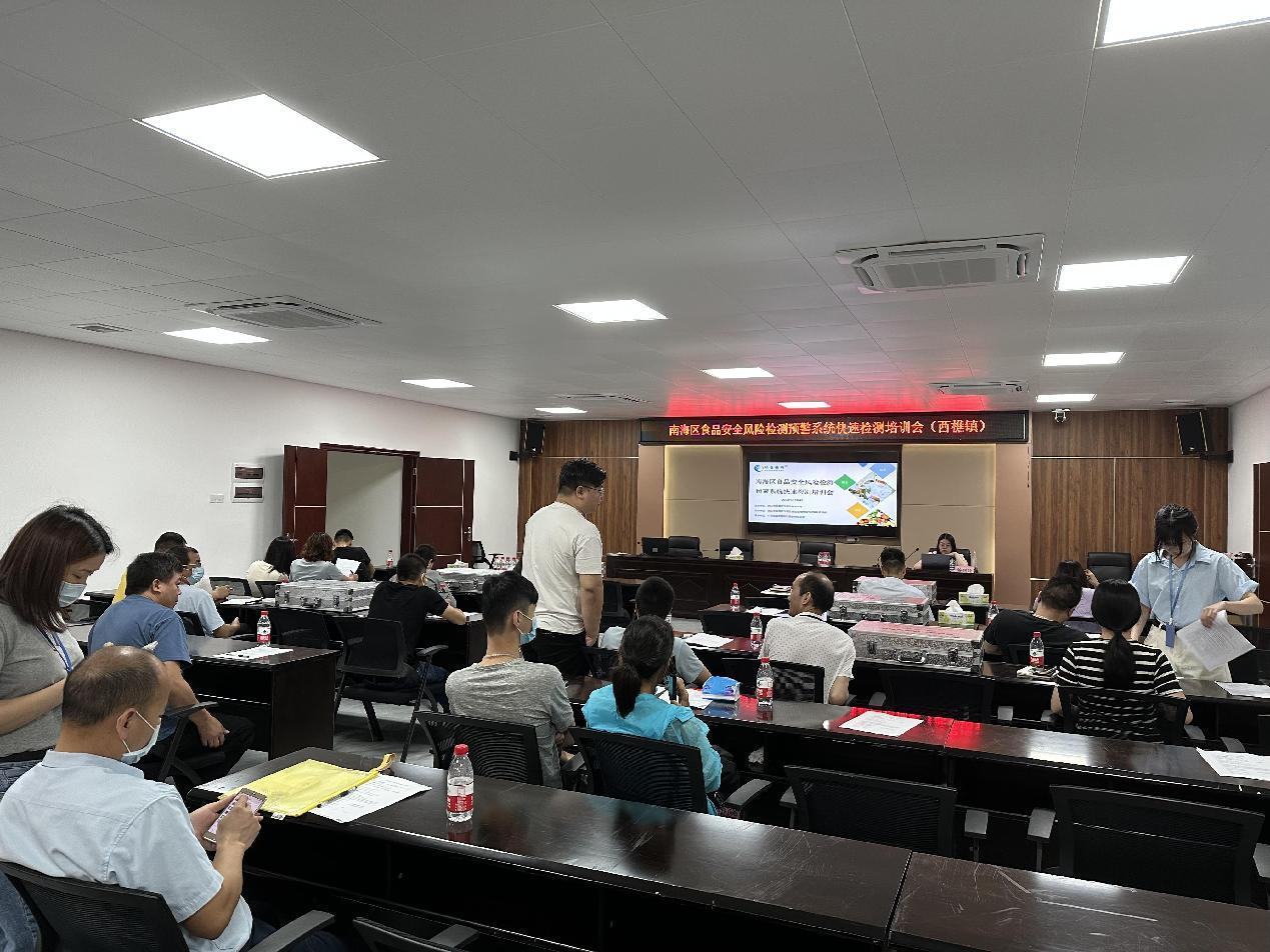为确保2023年“南海区食品安全检测大数据风险分析系统保障食品安全工作”项目的顺利开展,佛山市南海区市场监督管理局委托广州市乐竞在线注册科技股份有限公司会同南海区各镇(街道)市场监督管理所于2023年5月5日-19日期间为南海区全区各食品安全风险监测点人员开展食用农产品农药残留快速检测培训工作。本次培训活动由南海区各镇(街道)市场监督管理所与乐竞在线注册公司共同组织开展。培训活动规模庞大,参加培训的人员为南海区全区各食品安全检测大数据风险分析系统保障食品安全工作项目风险检测点相关操作人员及负责人,培训对象包括了南海区全区7个镇街954个自检单位(含:农贸市场,超市,配送企业,酒店,餐饮店和学校,医院,机关单位,敬老院等单位食堂)。