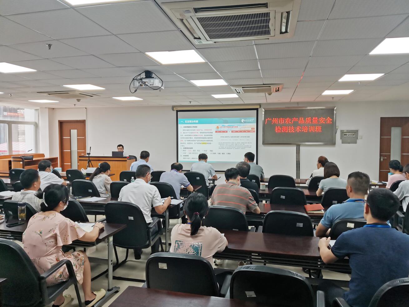 在本次培训班会议中,我司罗总详细讲述了“胶体金药物残留检测技术及酶抑制法农药残留检测新技术”,内容讲解深入浅出,培训效果获得了广州市农检中心领导的高度好评。通过此次农产品质量安全检测技术培训班活动,相信不仅全面提升了广州市农产品质量安全检测从业人员的专业技术能力及水平,而且为全市农产品质量安全奠定了基础,提供了有力保障。