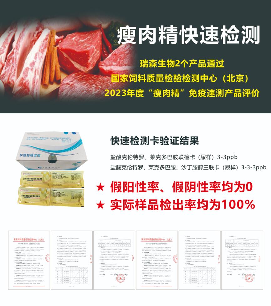 依据评价指标,乐竞在线注册“盐酸克伦特罗、莱克多巴胺联检卡”(尿样 3-3 ppb)、“盐酸克伦特罗、莱克多巴胺、沙丁胺醇三联卡”(尿样3-3-3)2种快速检测卡的假阳性率、假阴性率均为0,实际样品检出率均为100%。